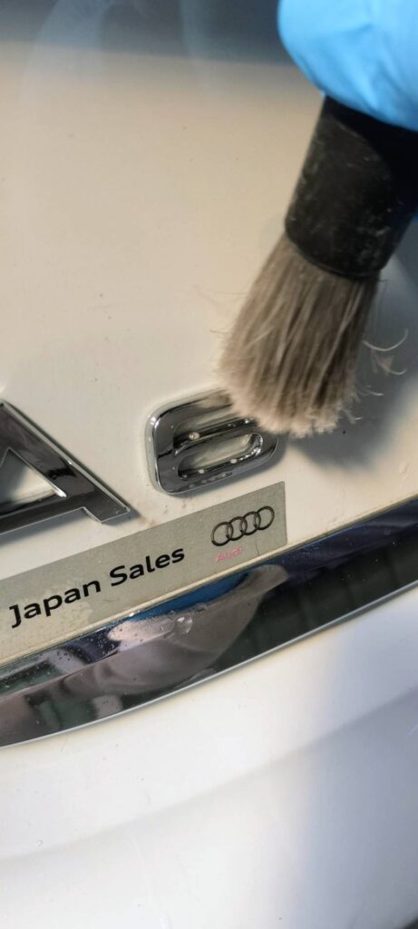 多いのは、やはり鉄粉ですが・・エンブレム周りの細部も状況によっては汚れが溜まっています。