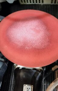 磨いてるバフがこのように赤くなるくらいです。